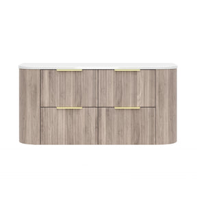 Timber Fluted Curved Classic Oak Artis 1200mm Waterproof Double Bowl Wall Hung Vanity Solid Surface Stone top