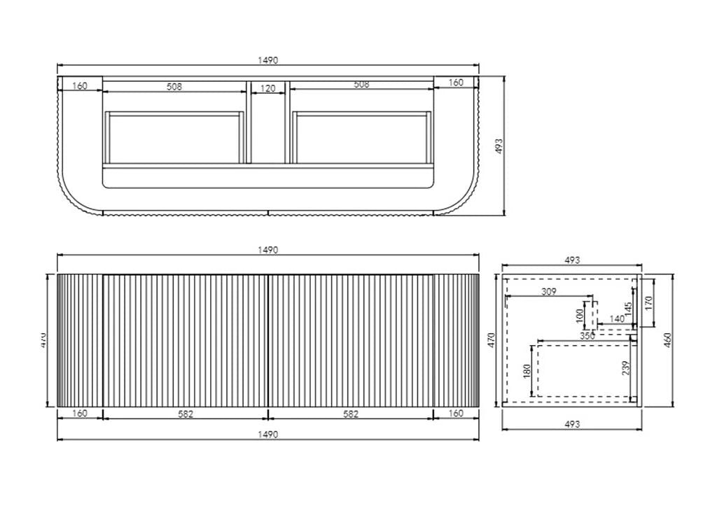Avalon 1500mm Fluted Curved Wall Hung Matte Black Vanity Carrara White Stone top - Cabinet only / Chrome / Matte Black is backordered and will ship as soon as it is back in stock.