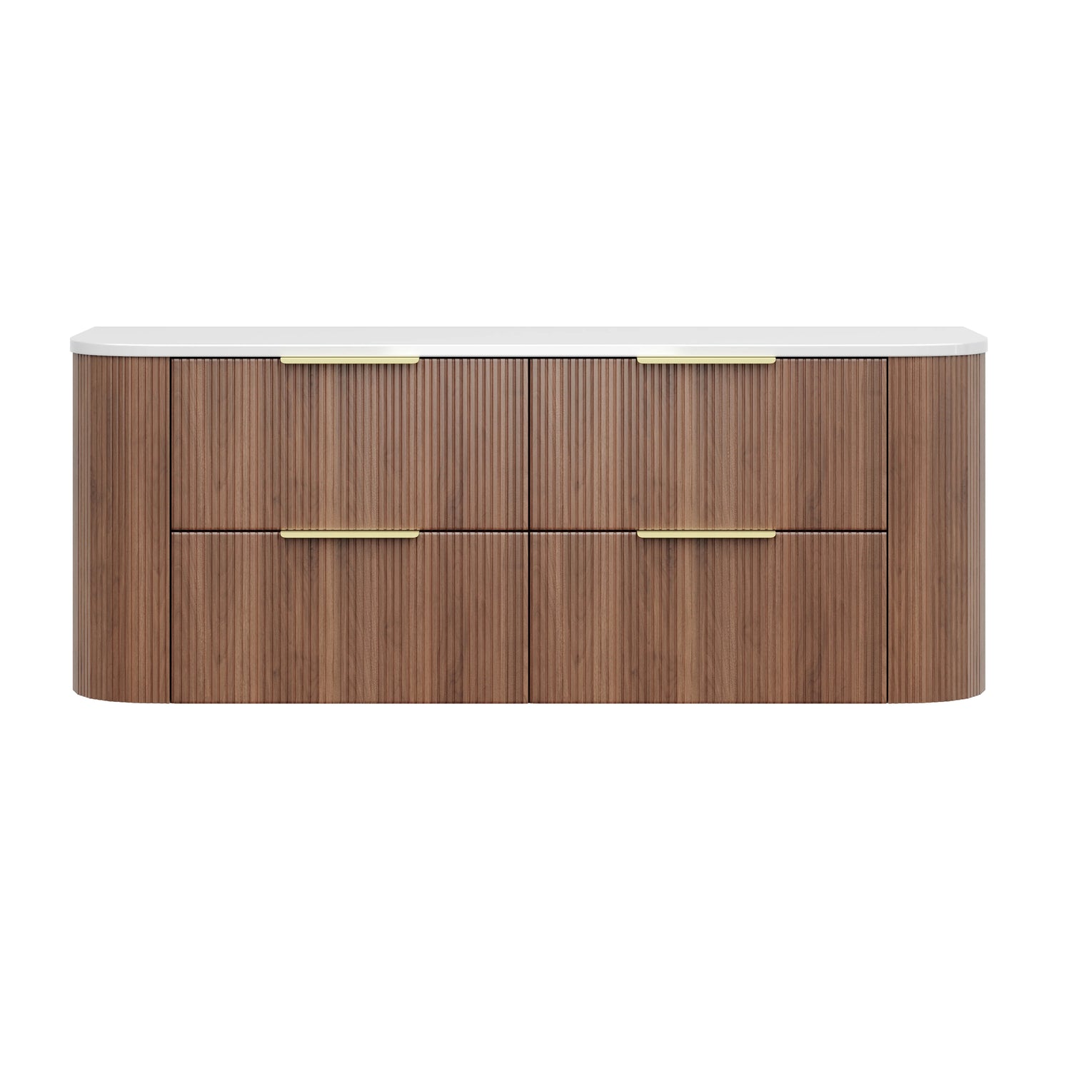 Timber Prime Oak Artis 1500mm Fluted Curved Waterproof Wall Hung Vanity French Fataisie Stone top - Cabinet only / Matte White / Prime Oak is backordered and will ship as soon as it is back in stock.