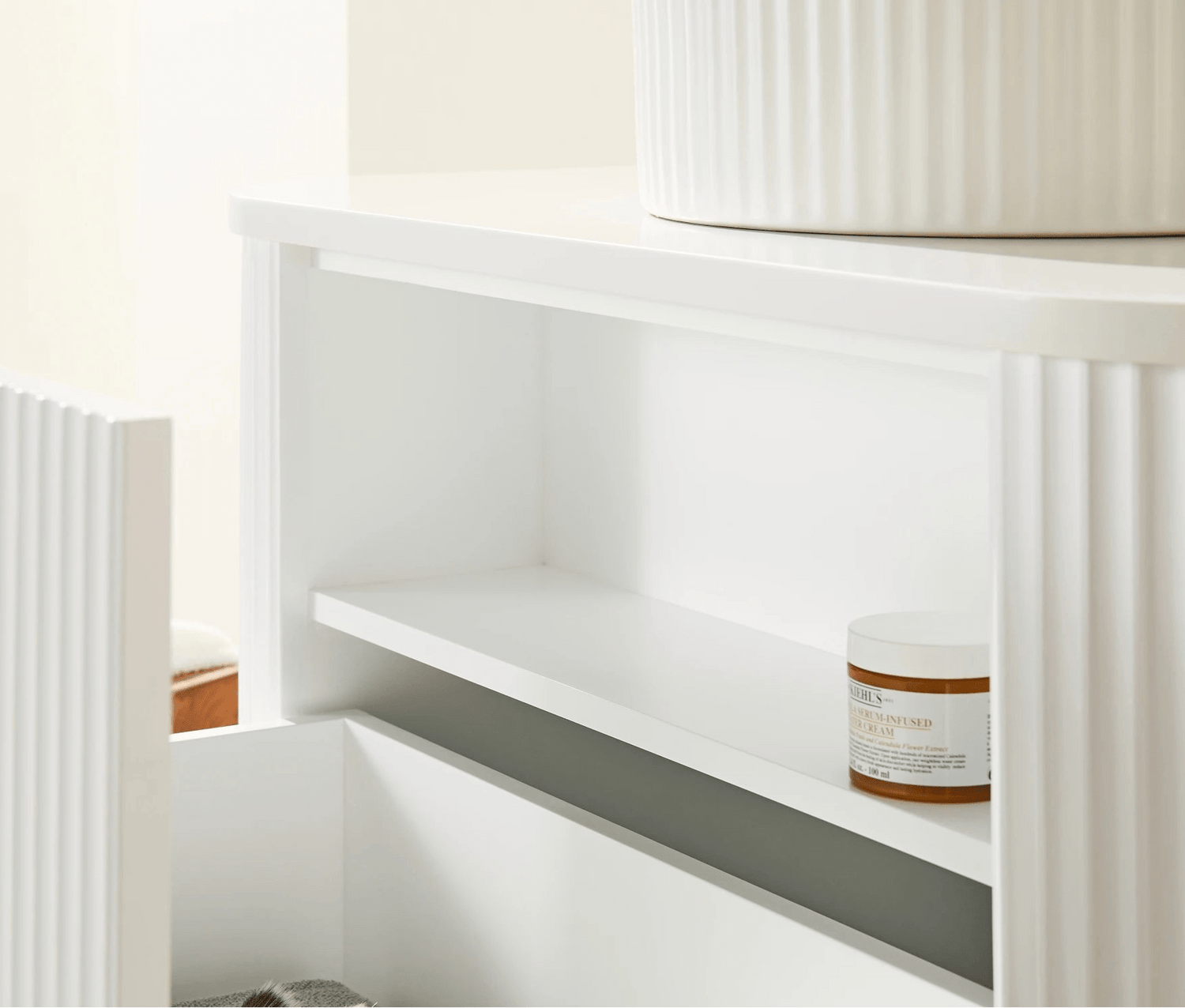 - Matte white Fluted finish, white interior