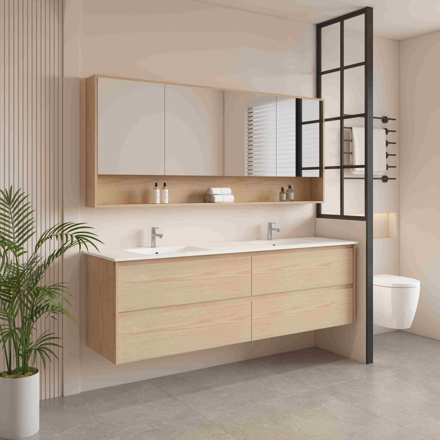 This vanity delivers natural elegance, exceptional storage, and full customization options, making it a standout choice for large bathrooms.