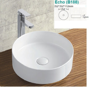 Echo 360mm Round Above Counter Gloss White Basin - Gloss White is backordered and will ship as soon as it is back in stock.