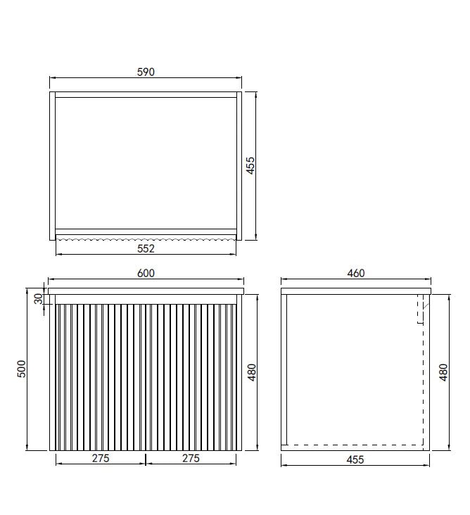Fluted Wall Hung Vanity Brindabella 600mm Matte Black Waterproof Carrara Stone top