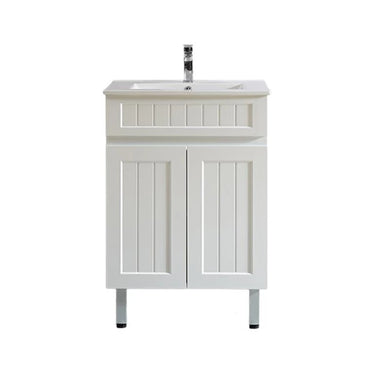 Hampton Shaker 600x360mm Slim Narrow Matte White PVC Waterproof Freestanding Vanity