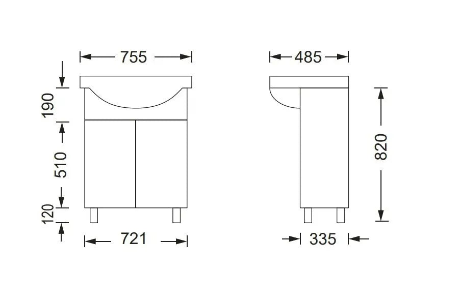 Semi-Recessed Two Doors Freestanding Vanity 750mm