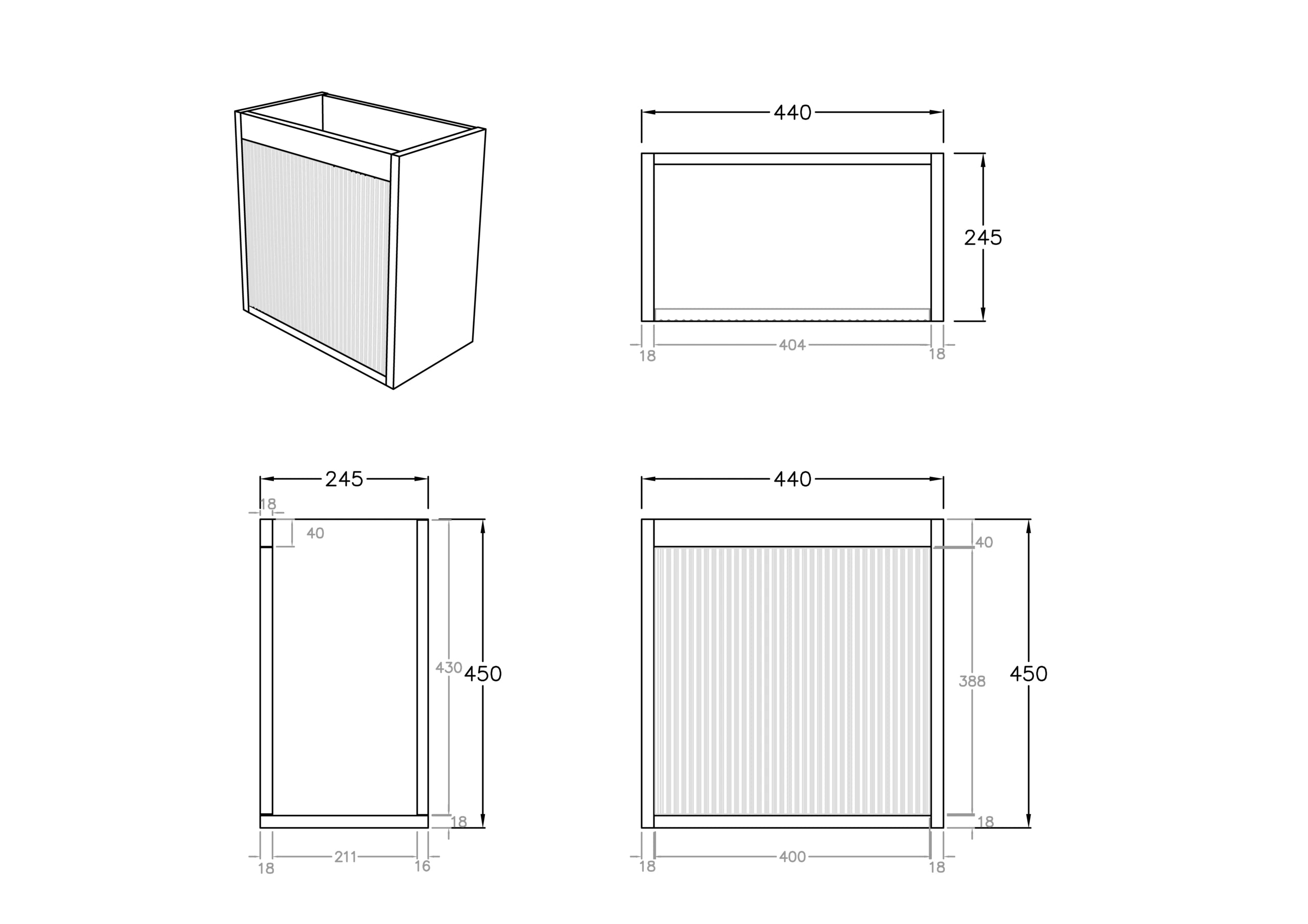 Timber Fluted Prime Oak Ensuite Narrow Bellevue Wall Hung Vanity 450mm