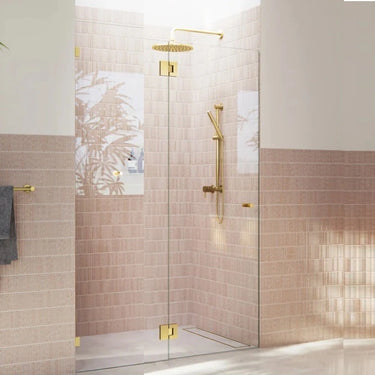 Frameless Brushed Gold Wall to Wall Pivot Door Shower Screen