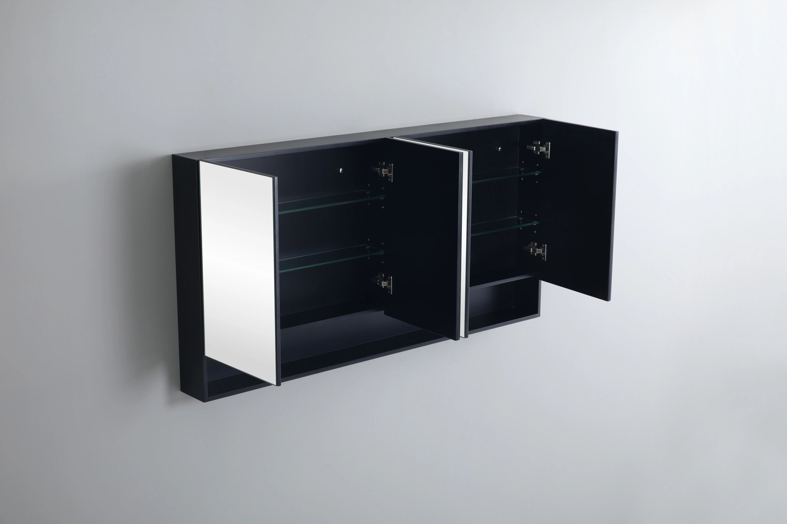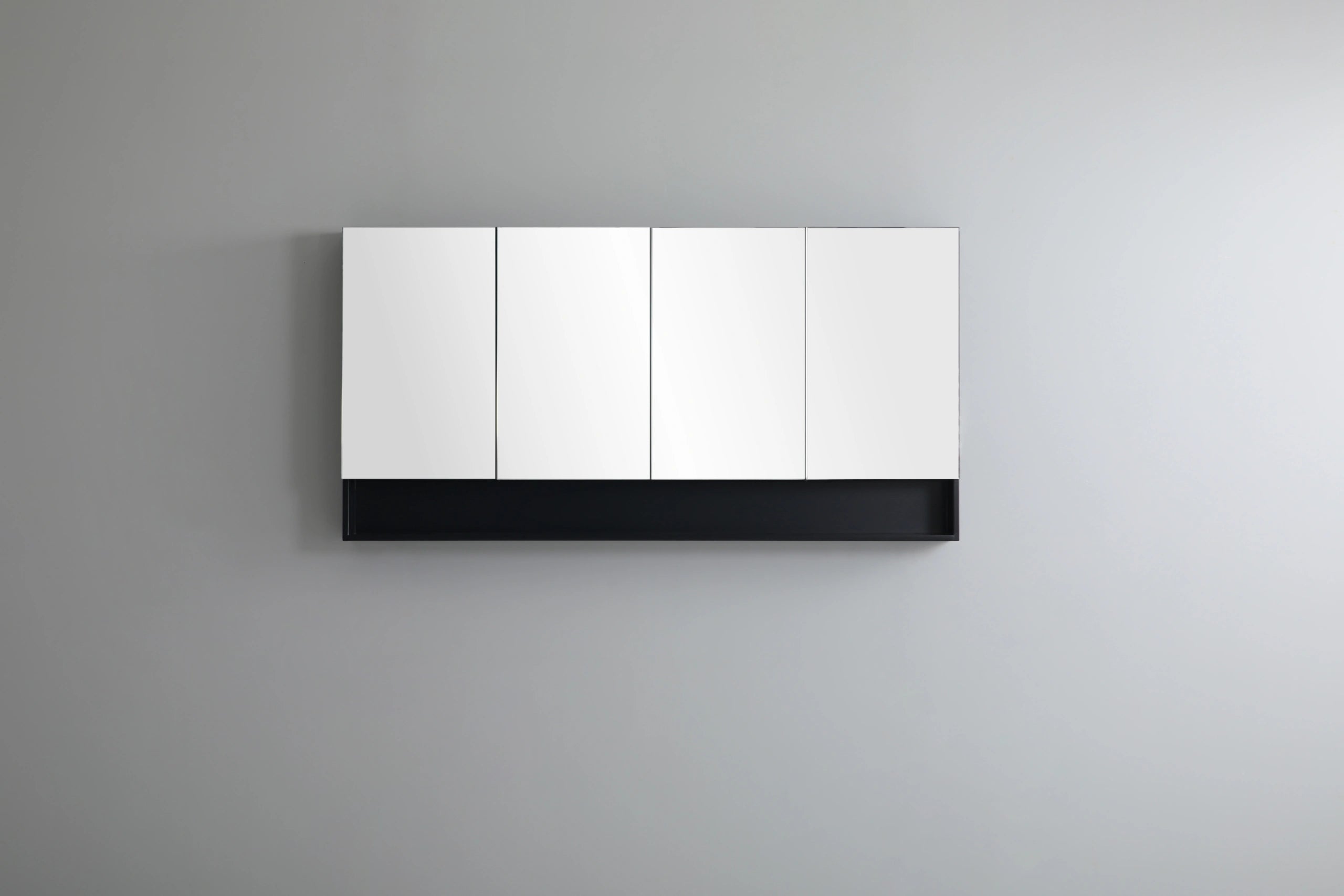 Fremental Matte Black PVC Waterproof 1500mm Mirror Shaving Cabinet with Shelf