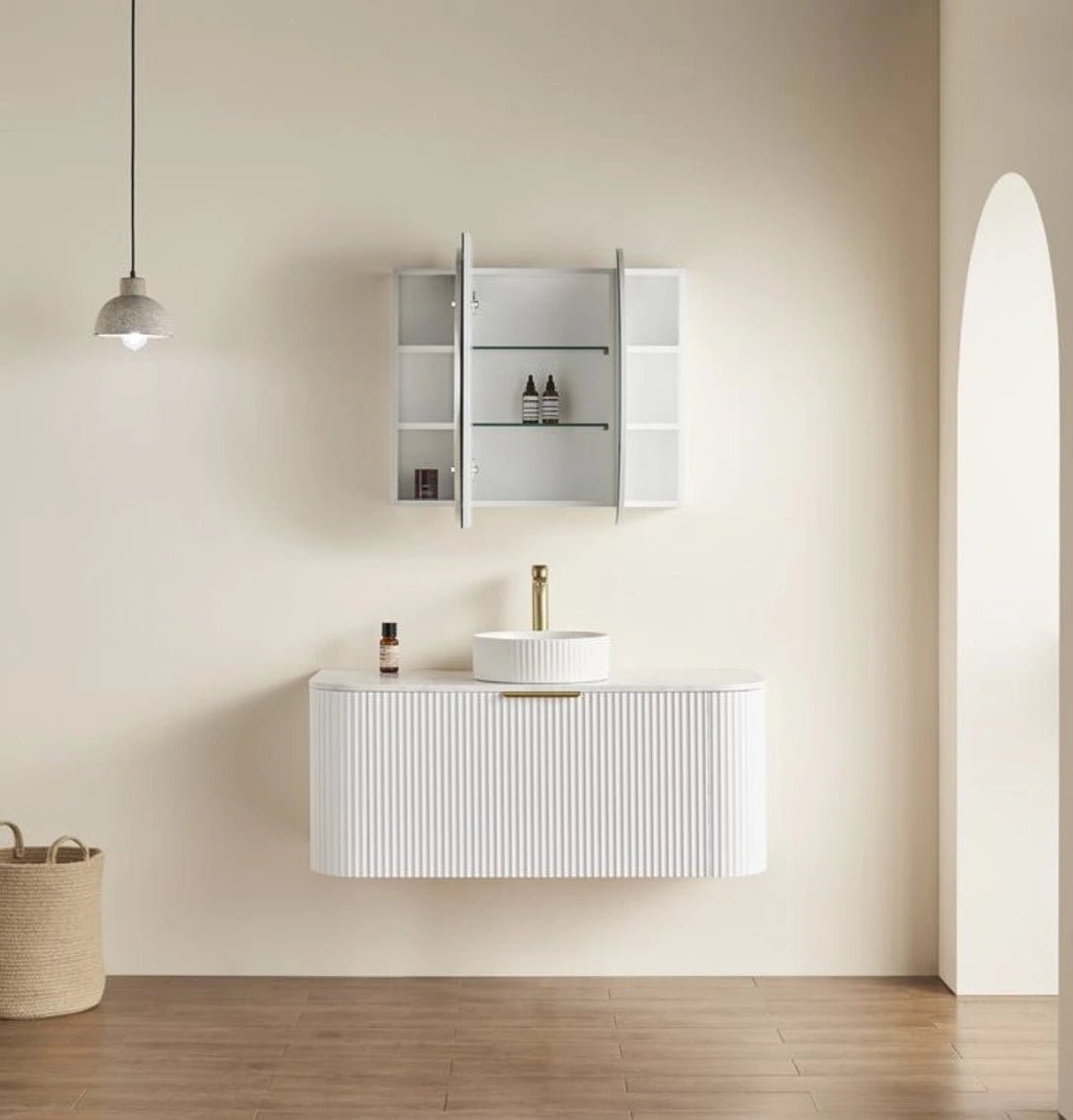 - Mirror door available in Matte White and Matte Black Polyurethane finishes.
