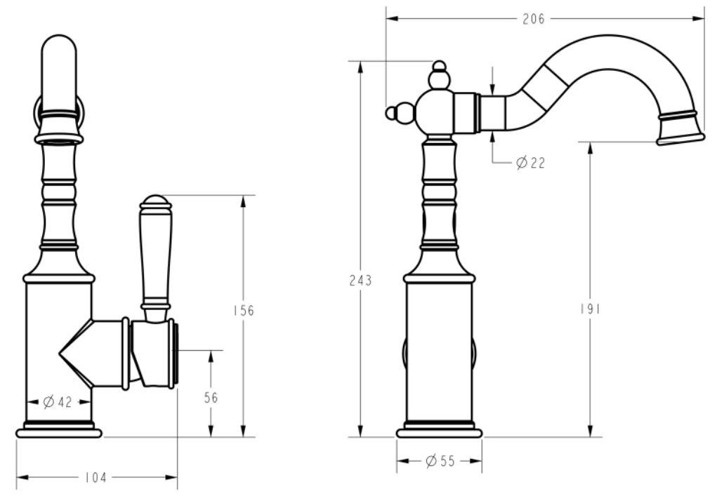 - Colours options: Chrome, Brushed Nickel, Matte Black, Brushed Gold