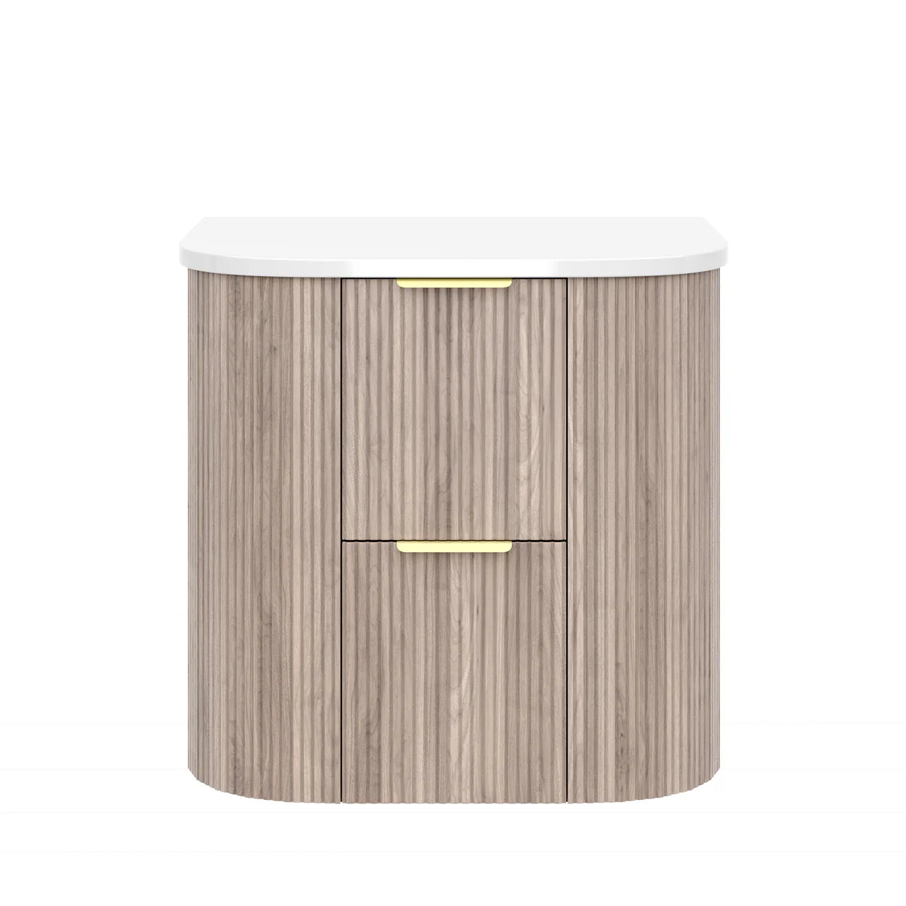 Timber Classic Oak Artis 600mm Fluted Curved Waterproof Wall Hung Vanity Carrara Gold Stone top