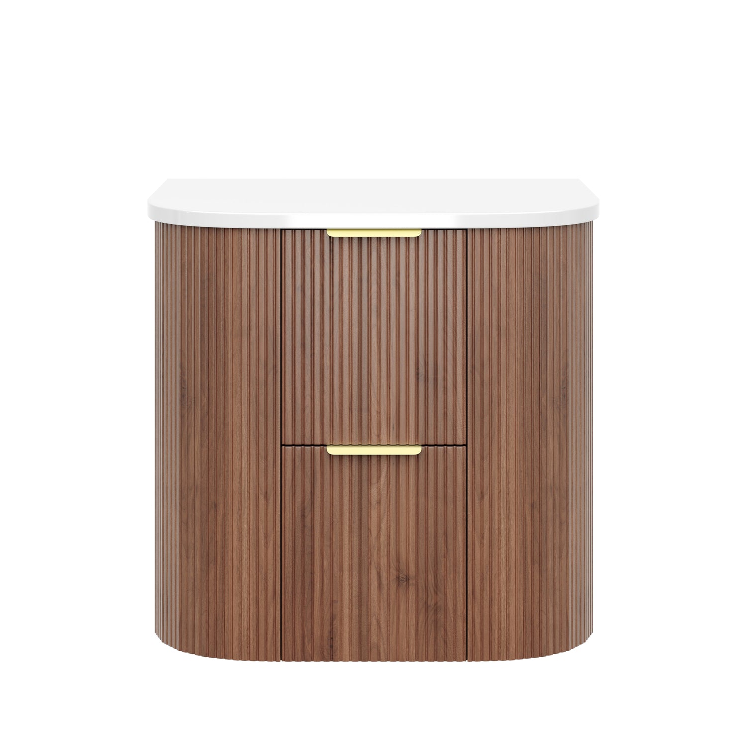 Timber Prime Oak Artis 600mm Fluted Curved Waterproof Wall Hung Vanity Carrara Gold Stone top