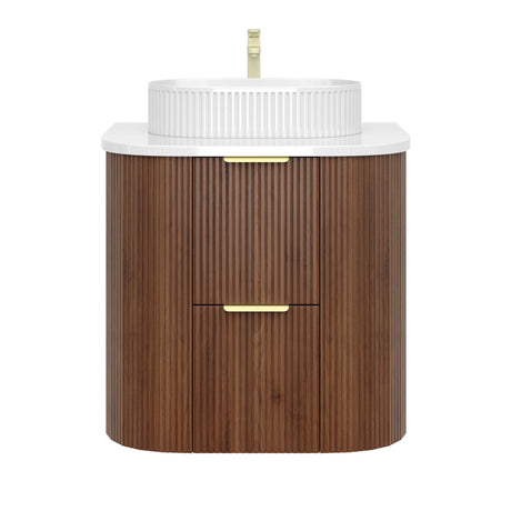 - Timber Walnut Artis 600mm Fluted Curved Waterproof Wall Hung Vanity Carrara Gold Stone top From $799.00- $1,110.00Unit price /Unavailable