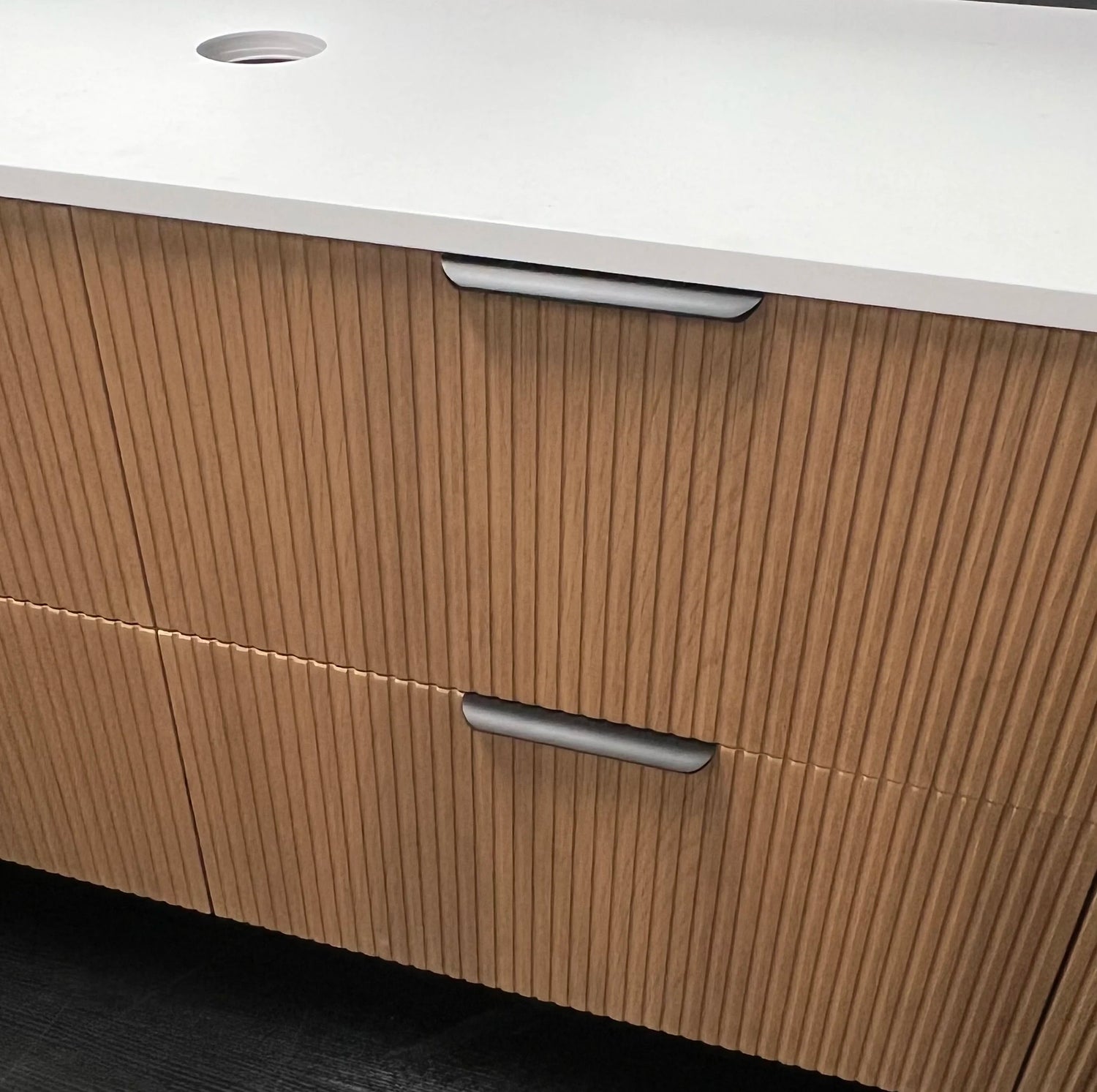 - 12mm Solid Surface (Matte White): Seamless, soft-touch matte finish.