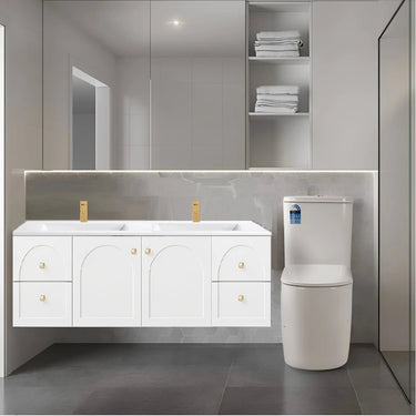 Chester Archie Hampton 1500mm Double Bowl Matte White PVC Waterproof Wall Hung Vanity Brushed Gold Handles