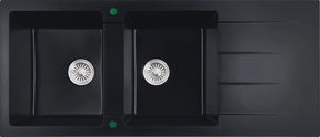 Cora Granite Double Bowl with Drainer Kitchen Sink 1160x500x210mm Black