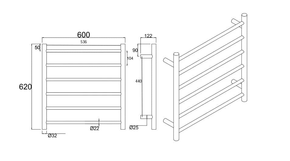 Electric Heated Towel Rail Towel Rack Chrome Round 6 Bars