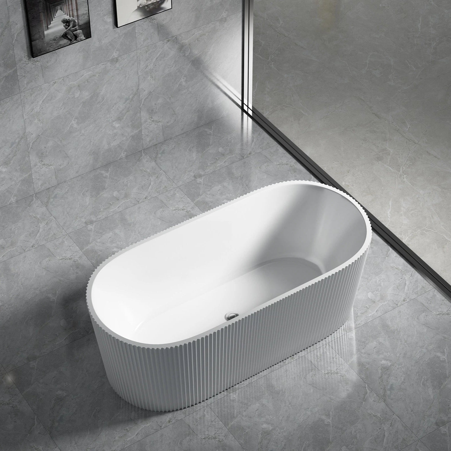 Fluted Agena Oval Round Freestanding Bathtub 1700 Gloss White