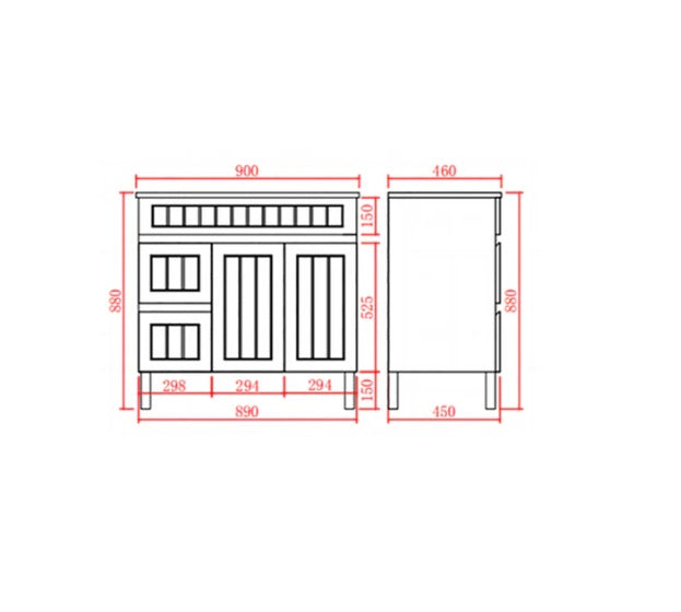 - 900 x 365 x 880mm