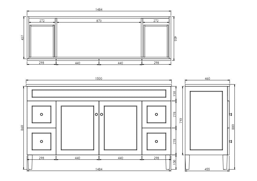 - 1500 x 465 x 880mm