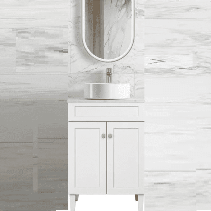Harrington Hampton Shaker 600mm Matte White PVC Waterproof Freestanding Vanity Carrara Stone Top