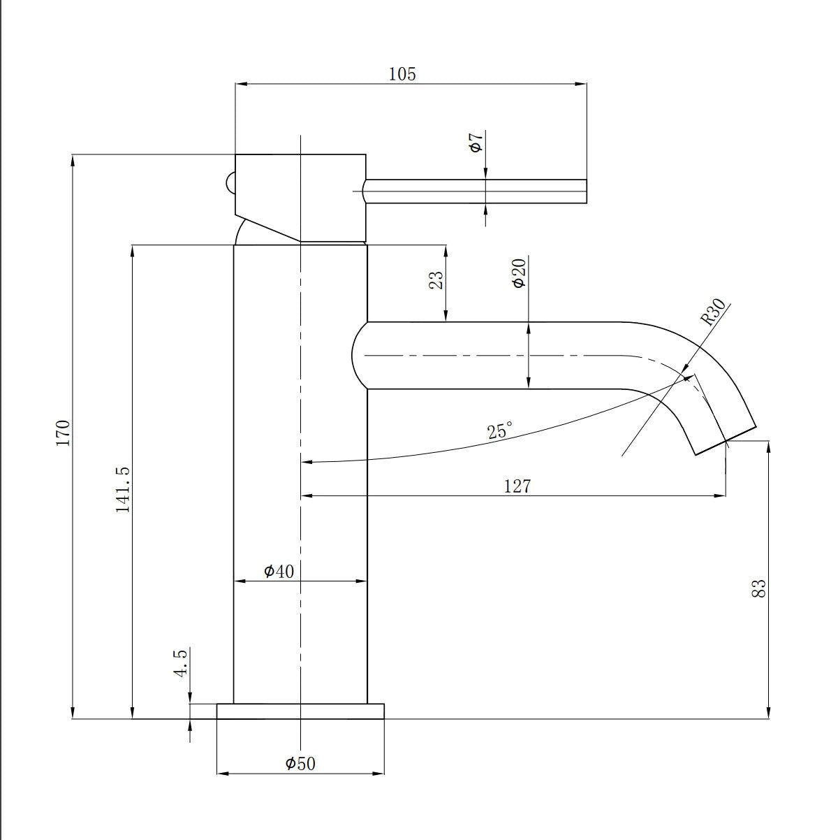Otus Slimline SS Basin Mixer Curved Spout Stainless Steel