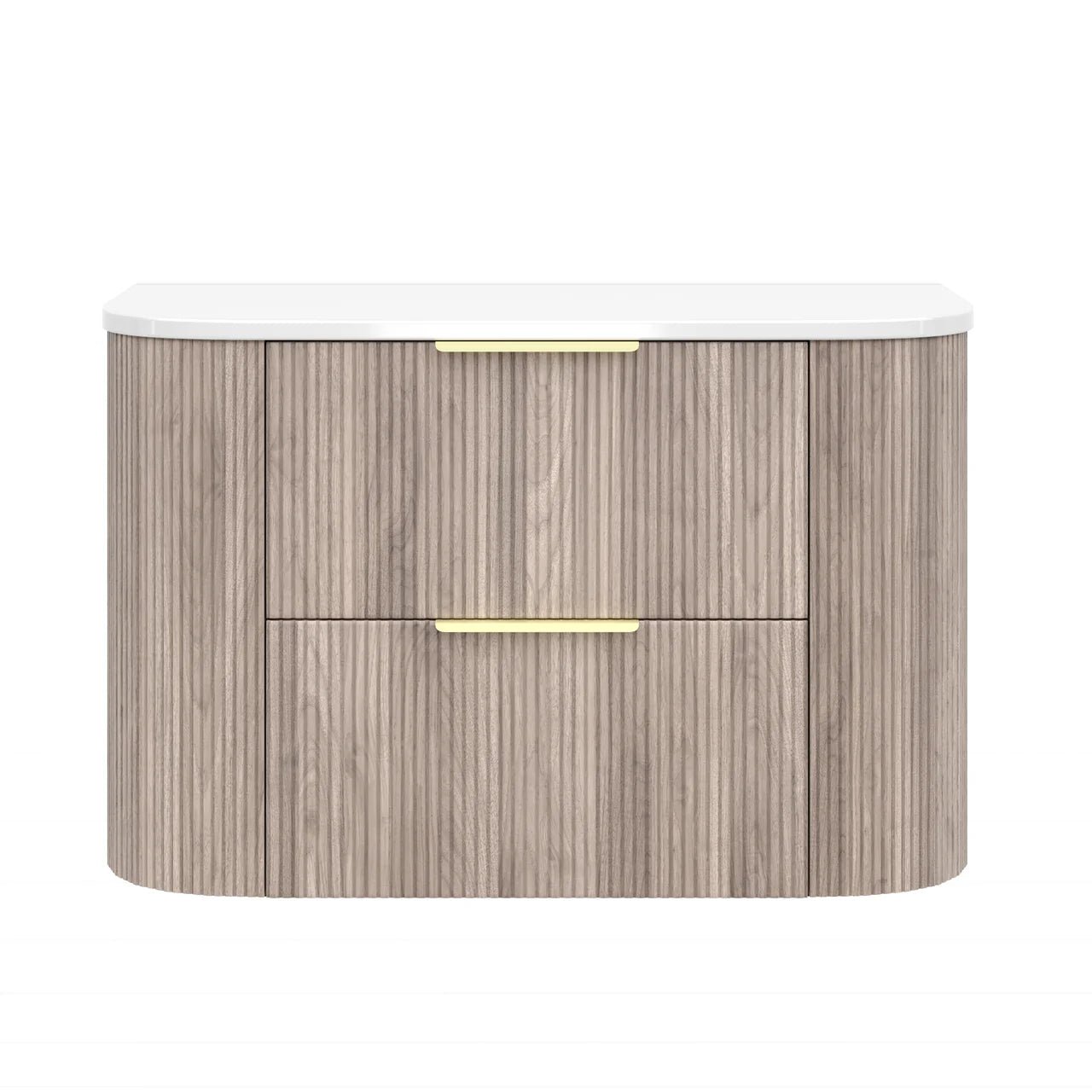 Timber Classic Oak Artis 900mm Fluted Curved Waterproof Wall Hung Vanity Calacatta Solid Surface Stone top