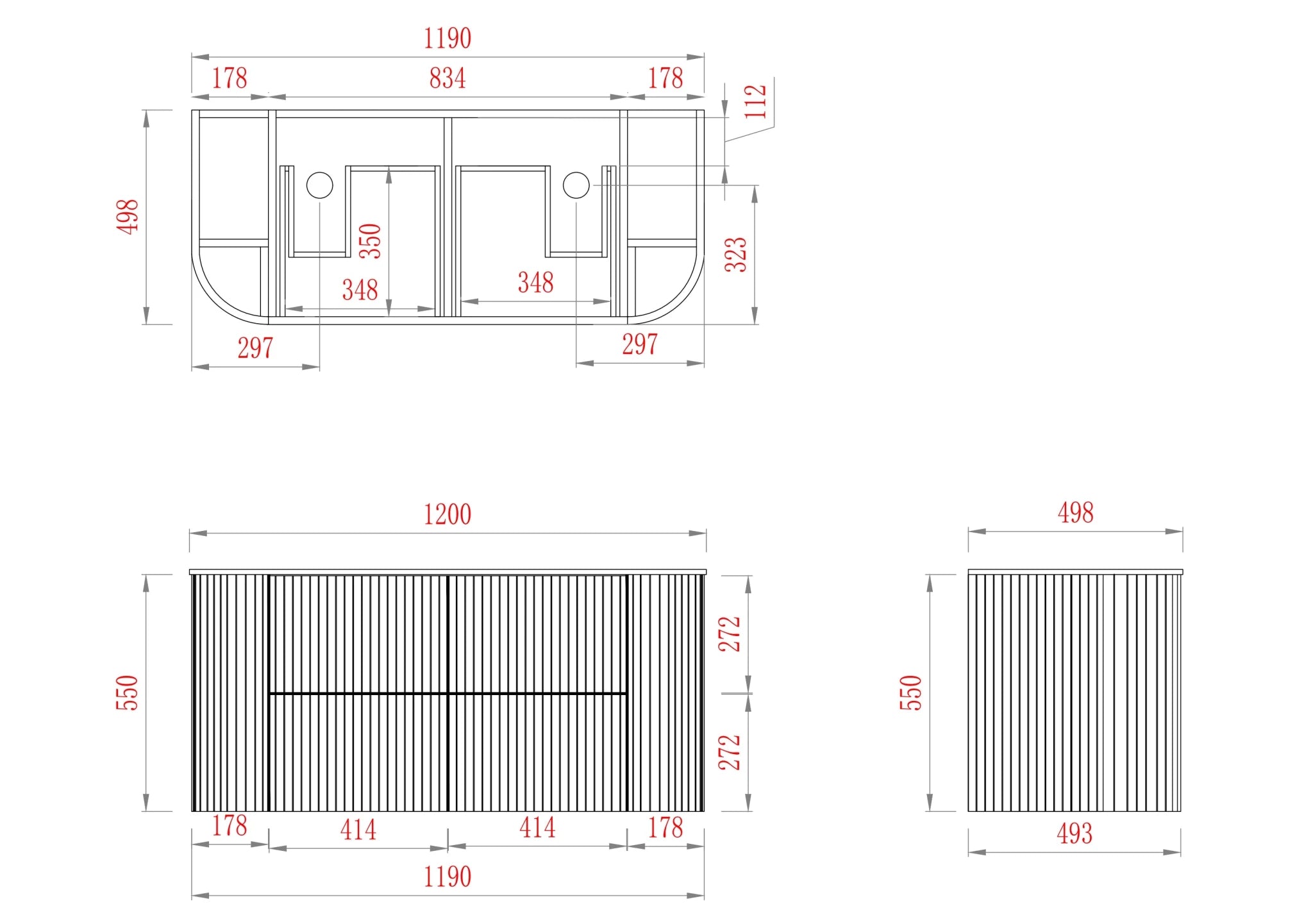 - 1200 x 500 x 550mm