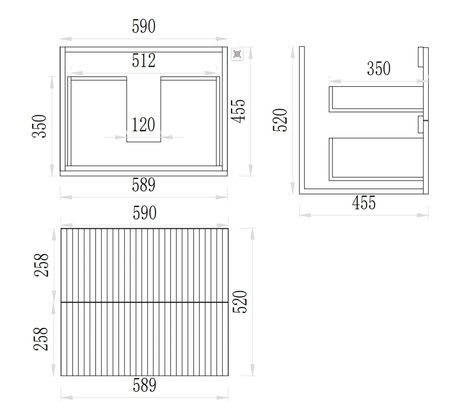 - Height: 520mm (Cabinet Only) / Approx 540mm (Including Top)