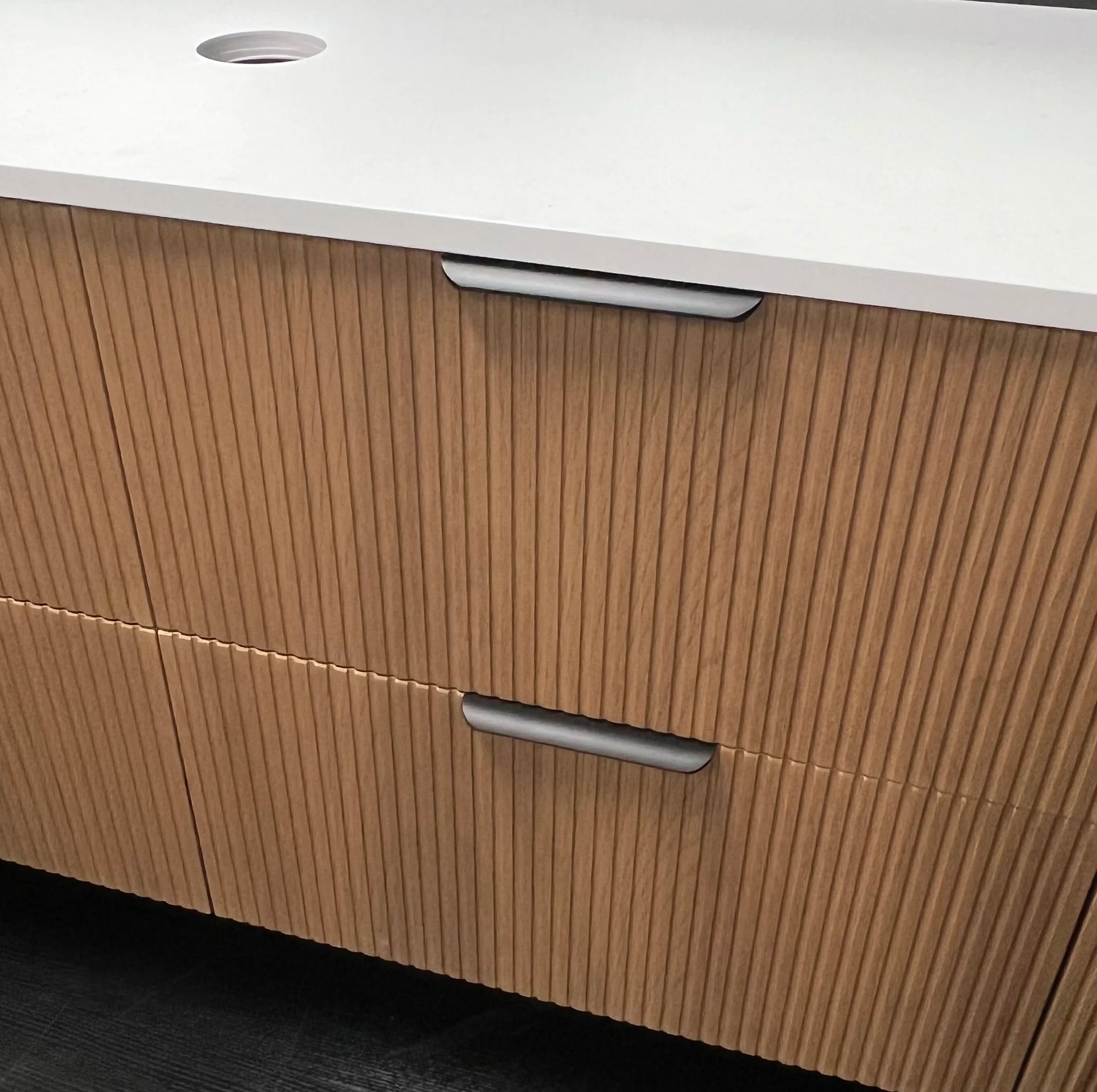 The Timber Fluted finish is versatile and warm. Pair this vanity with simple, light-colored wall tiles to let the Prime Oak grain detail truly shine.