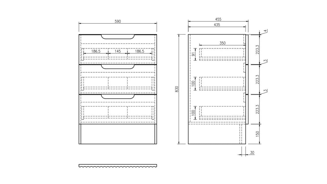 Height: 830mm (Cabinet Only) / Approx 845mm (Including Top)