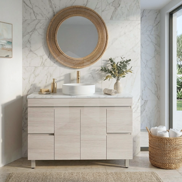 Q: Does the wood grain look and feel real? A: The Coastal Timber finish is designed to replicate the natural texture and warm tones of real wood. It provides the organic aesthetic of a timber vanity with the added benefit of being entirely maintenance-free and moisture-proof.