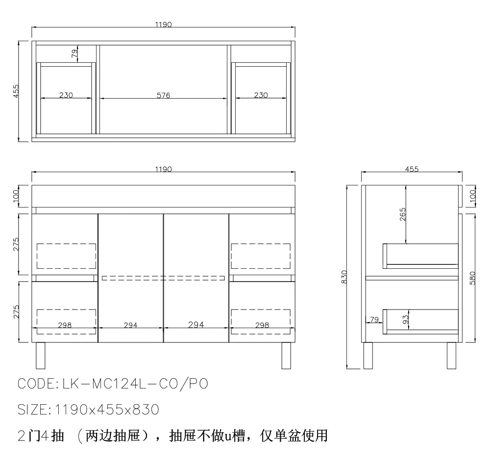 Width: 1190mm (Cabinet Only) / 1200mm (Including Top)