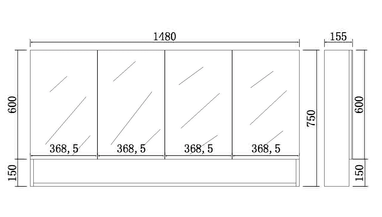 - 1500 x 750 x 155 mm